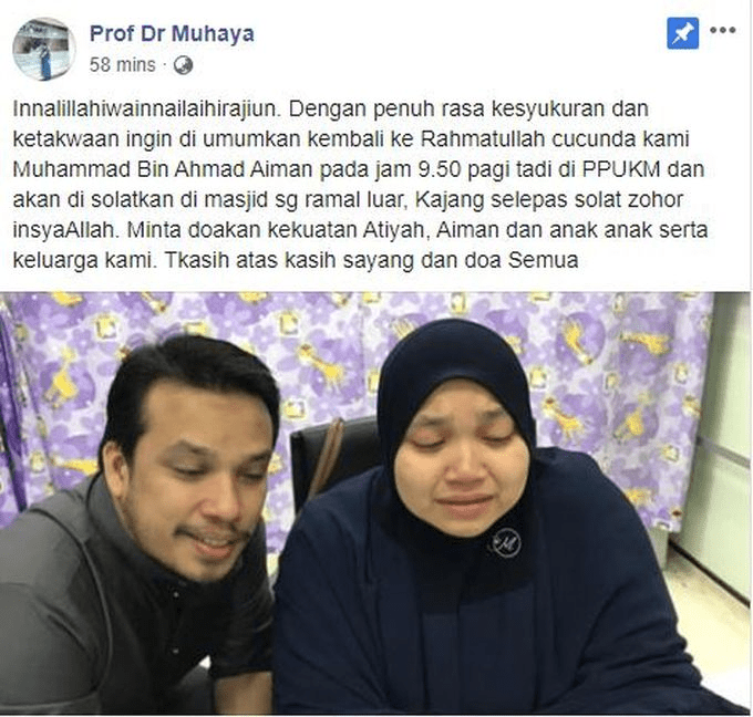 Pertengahan disember lalu, anak kedua datuk prof dr muhaya mohamad diuji kehilangan anak lelaki pertama, muhammad ahmad aiman, 2 tahun.